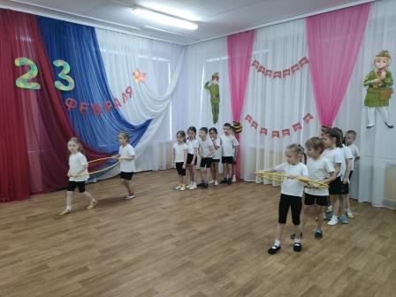 Праздник 23 февраля в детском саду - хороший повод воспитать у дошкольников чувство патриотизма, прикоснуться к лучшим традициям нашей Родины, сформировать чувство гордости за защитников Отечества. Этот праздник воспитывает уважение к человеку в военной форме, прививает любовь к Родине и развивает патриотическое чувство. В нашем детском саду прошёл праздник посвящённый этому торжественному дню. Дети с удовольствием участвовали в спортивных состязаниях, подарили друг другу хорошее настроение и улыбки, показали какие они ловкие, смелые и выносливые.